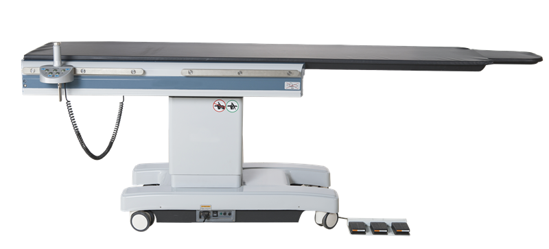 台面电动纵向平移,采用进口轨道,平移行程≥350mm,可配C型臂使用。